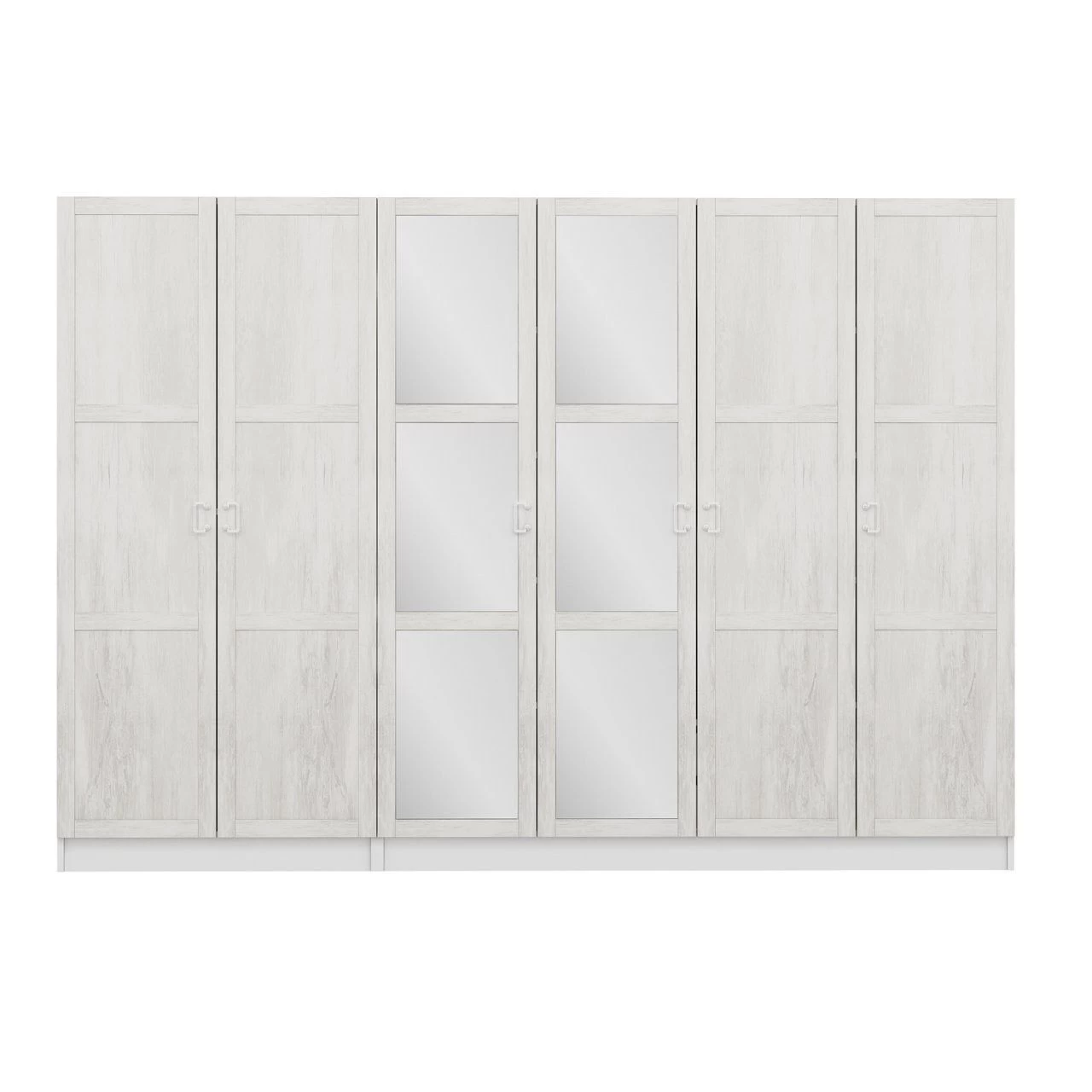 De kast wordt geleverd in een strakke witte kleur die moeiteloos past bij elk interieur. De breedte van 225 cm, hoogte van 210 cm en diepte van 52 cm bieden voldoende opbergruimte voor al je kleding, schoenen en accessoires.