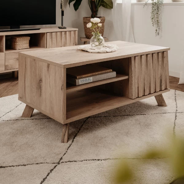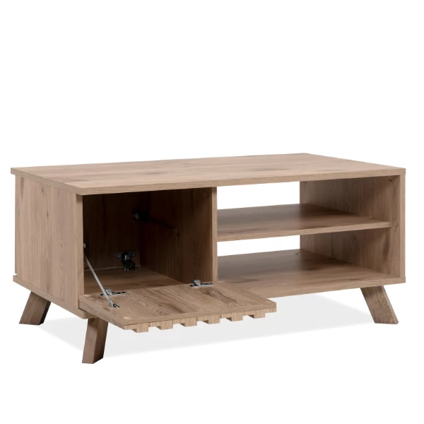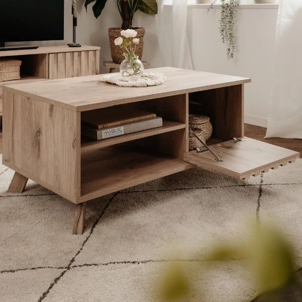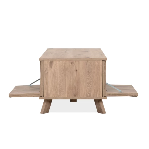 Salontafel Arabella is gemaakt uit MDF en spaanplaat met een decor van Zweedse eik. De kast heeft 2 opklapdeuren en 1 legplank.