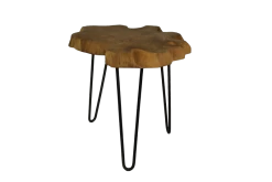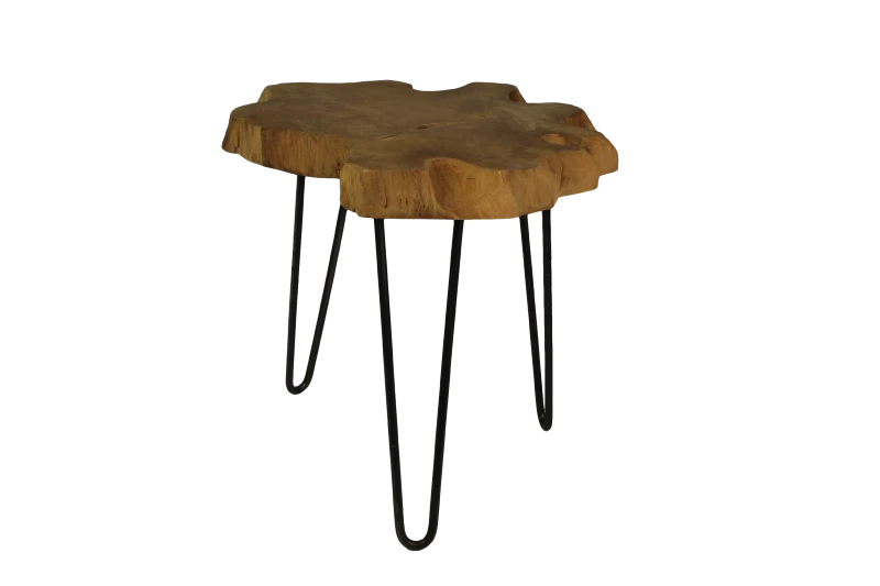 Salontafel Harvey ø55cm Met Haarspeldpoten – Ijzer / Teak Boomstam
