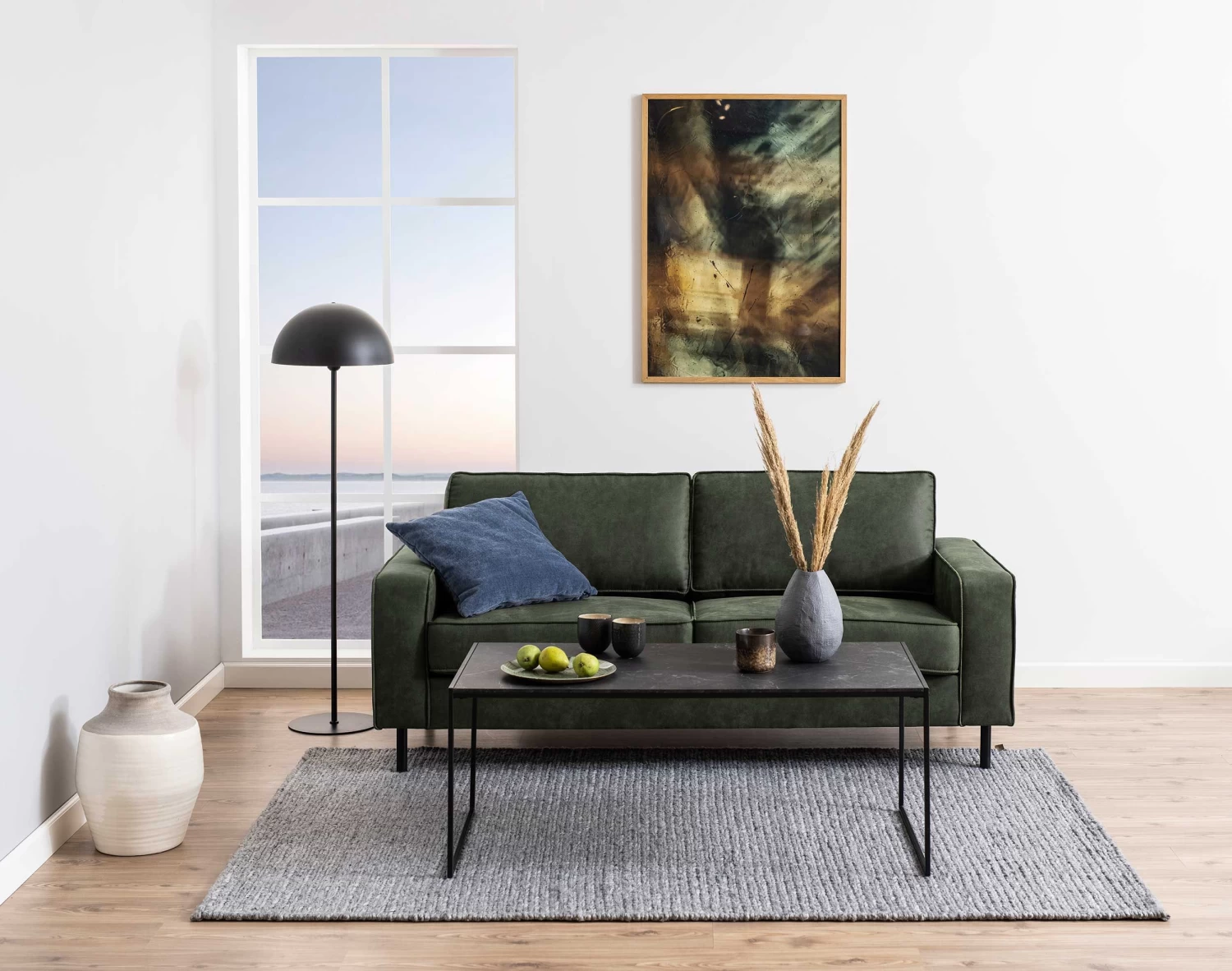 Met deze salontafel met royale afmetingen geef je elke zithoek extra cachet. Dankzij zijn minimalistische design en matzwarte metalen frame past deze tafel perfect in een industrieel of modern interieur. Het tafelblad in marmerlook geeft een luxe toets aan het geheel.