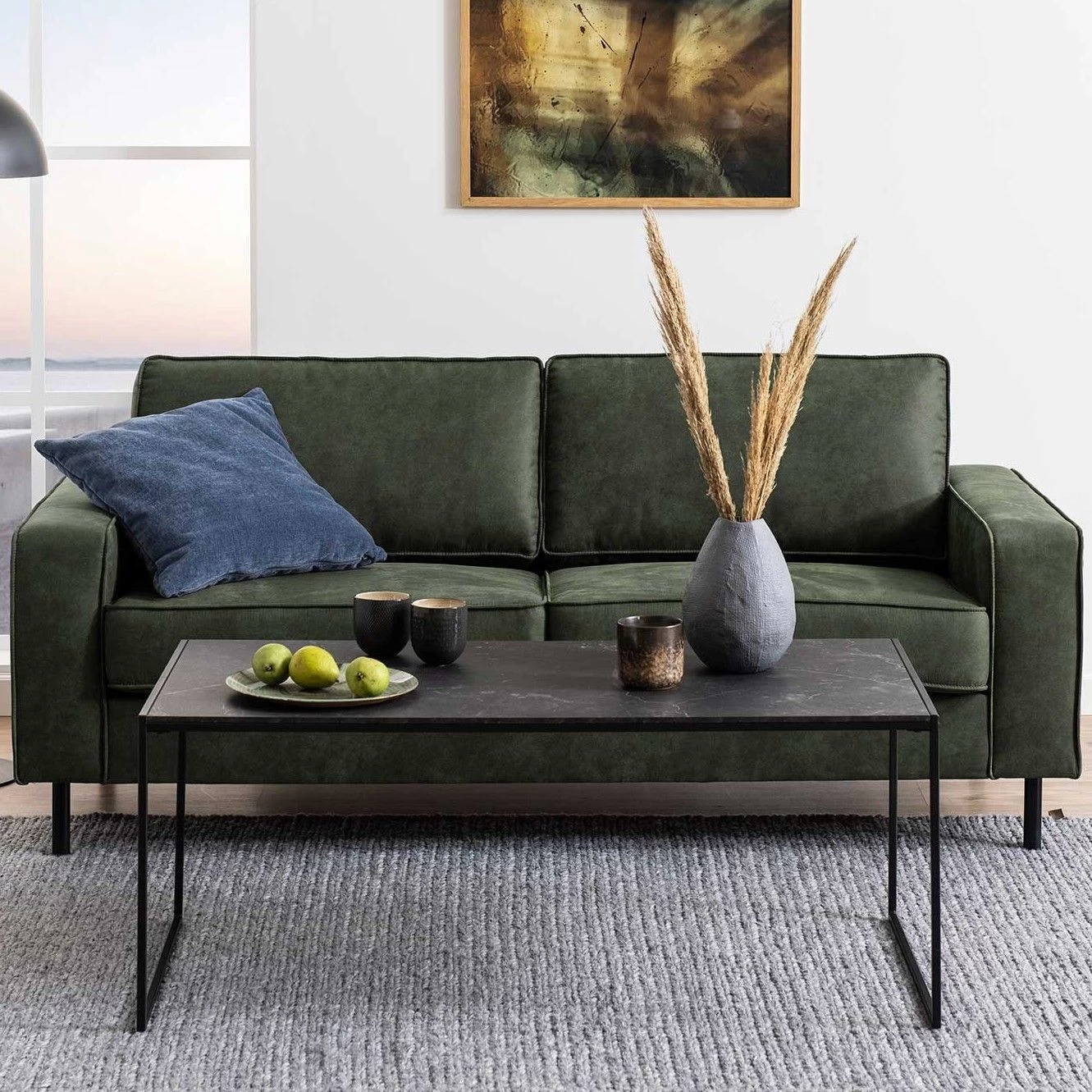 Salontafel Inacio met matzwart frame en blad met marmerlook.