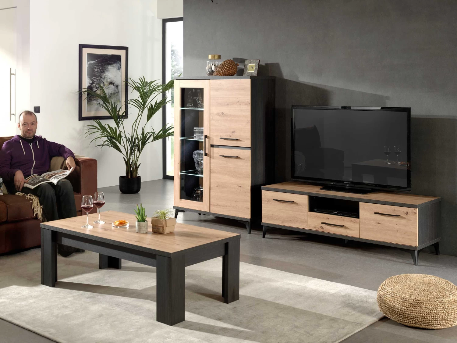 De Lodz collectie van het merk Divaco bestaat uit eigentijdse woonkamermeubelen met een industrieel karakter. De meubelen zijn gemaakt in Europa uit ecologische spaanplaat en hebben een artisan houtdecor.