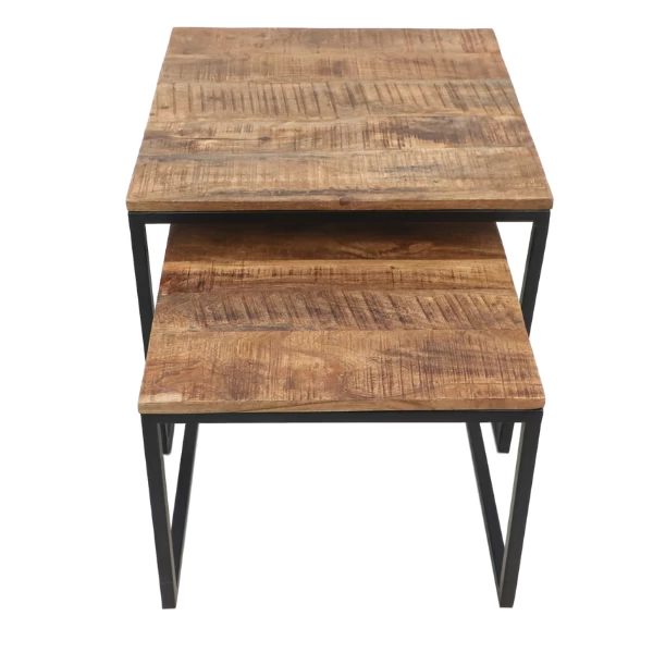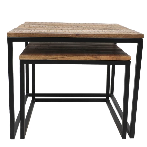 Met deze salontafels haal je een multifunctionele set van tafels in huis. De set combineert twee mooie salontafels die apart als bijzettafel gebruikt kunnen worden of gezamenlijk als salontafel. De set is gemaakt van mangohout met een robuust stalen onderstel. Berg de twee tafels gemakkelijk op door ze ineen te schuiven. Omdat de salontafels handgemaakt zijn, kunnen er kleine oneffenheden in het hout voorkomen. Dit maakt elk exemplaar uniek. Een authentiek meubelstuk voor een uniek interieur.