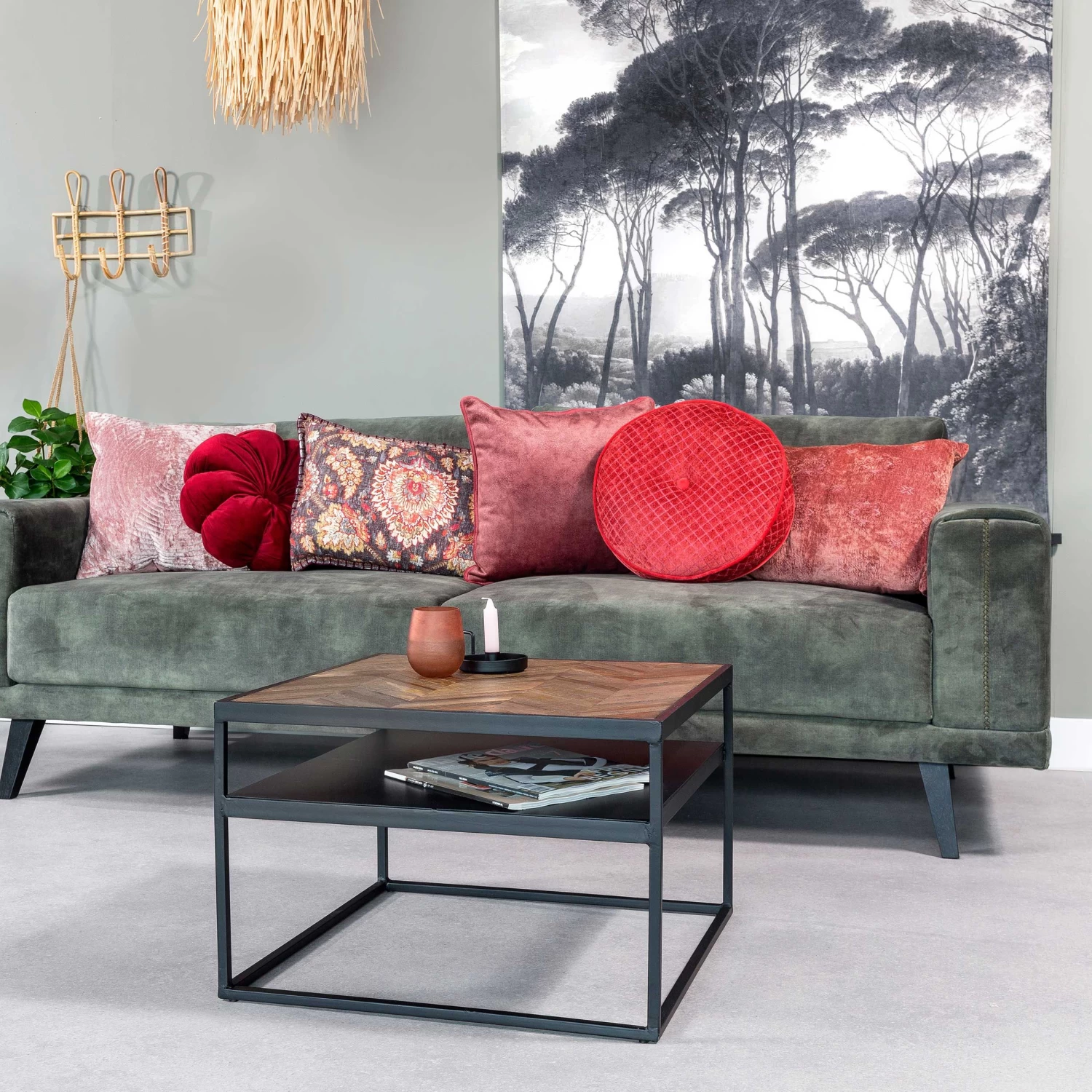 Salontafel Morena 60x60cm Visgraatmotief – Bruin/zwart