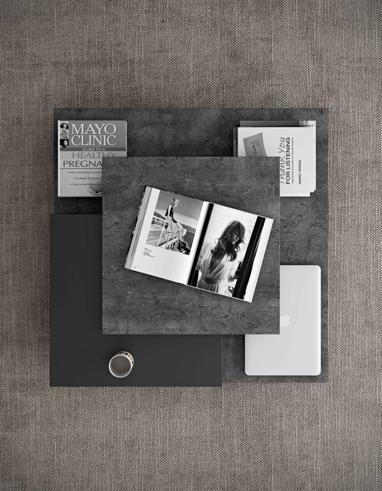 Salontafel Slato uit hoogwaardige MDF. Verschillende niveaus, zwart en betonlook.