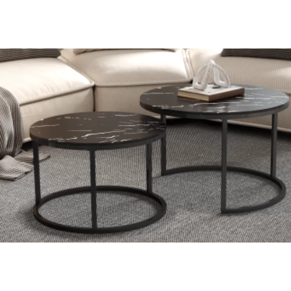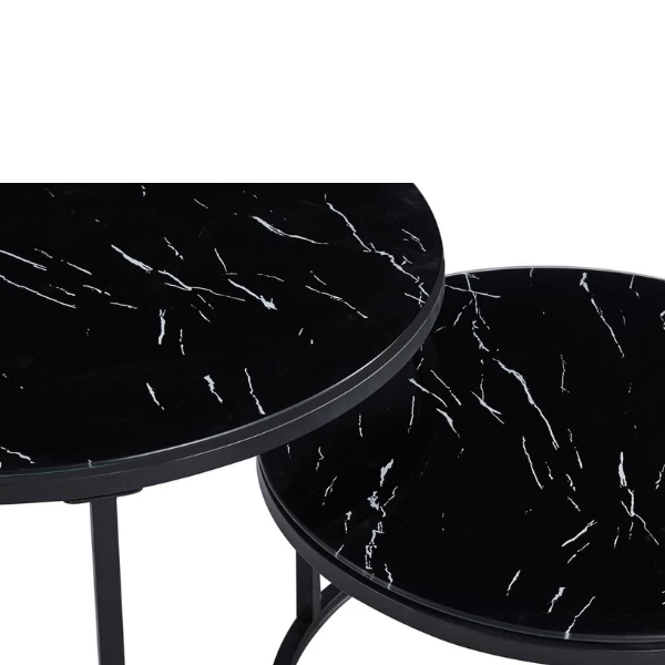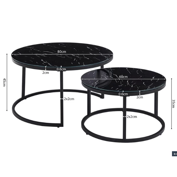 De belangrijkste kenmerken van deze salontafelset zijn het slanke ontwerp, dat een vleugje verfijning toevoegt aan elke interieurstijl. De marmeren zwarte decorafwerking straalt elegantie uit en past moeiteloos bij een breed scala aan kleurenschema’s. Het glazen blad biedt een glad en gemakkelijk schoon te maken oppervlak, waardoor het handig is voor dagelijks gebruik.