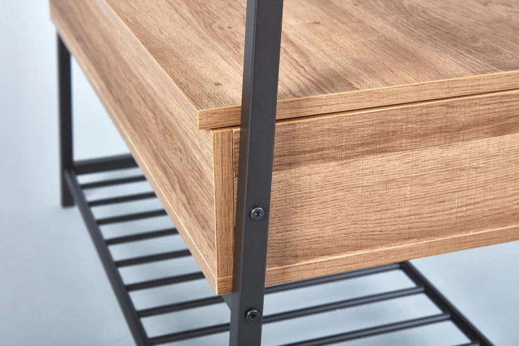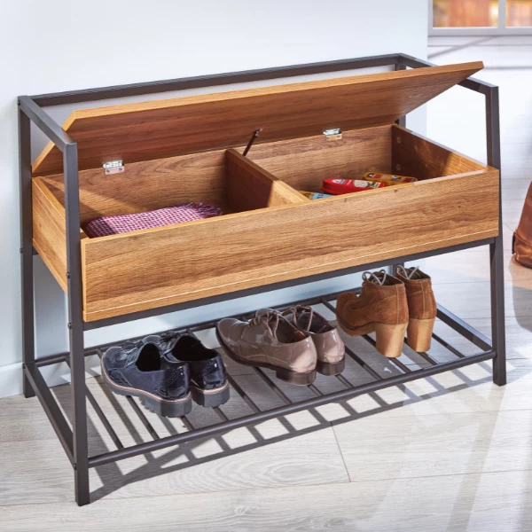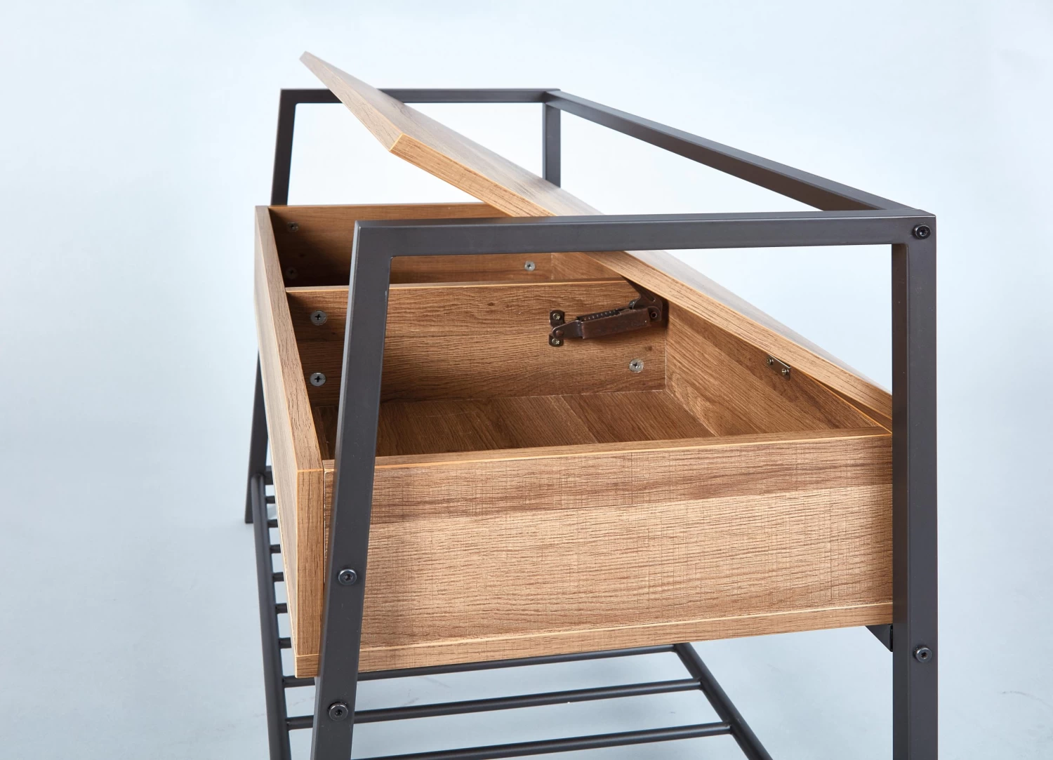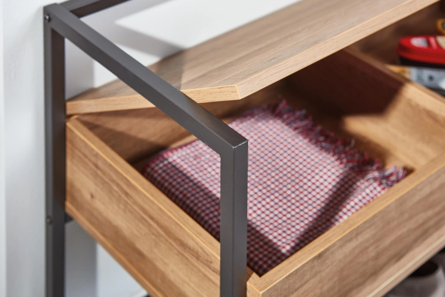 Dit multifunctionele schoenenrek helpt je om je hal ordelijk en georganiseerd te houden. Op het rekje onderaan kan je verschillende schoenen kwijt terwijl je onder het bankje ook over opbergruimte beschikt waarin je allerhande accessoires kan opbergen. De combinatie van het antracietkleurig metalen frame en het zitbankje in eikdecor creëert al meteen een huiselijke sfeer in de hal.
