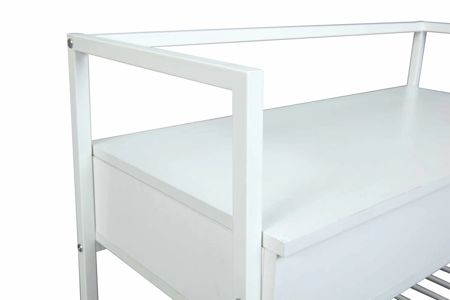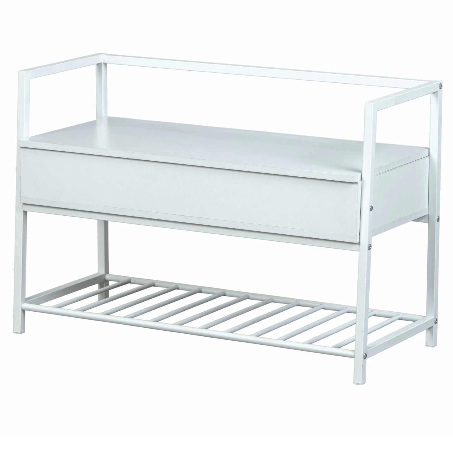 Witte schoenenbank Shoeplace met metalen frame en bankje van MDF.