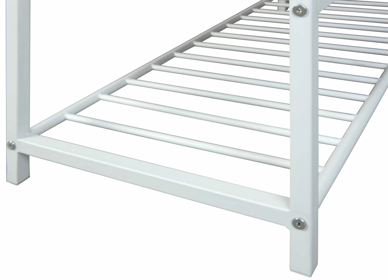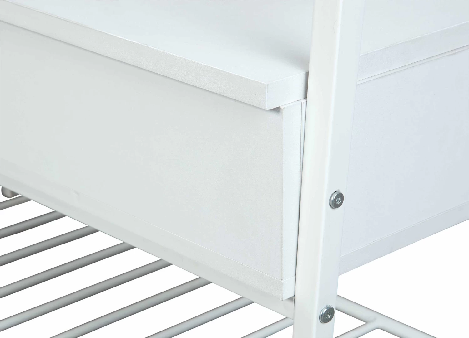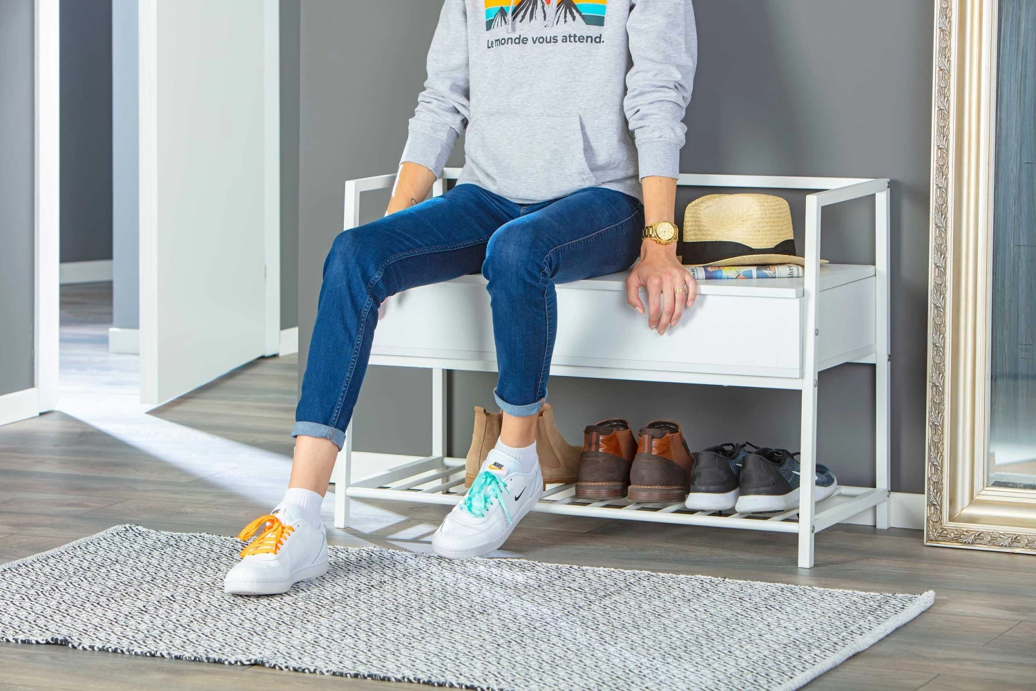 Dit multifunctionele schoenenrek helpt je om je hal ordelijk en georganiseerd te houden. Op het rekje onderaan kan je verschillende schoenen kwijt terwijl je onder het bankje ook over opbergruimte beschikt waarin je allerhande accessoires kan opbergen. De combinatie van het witte metalen frame en het witte zitbankje creëert een tijdloze sfeer in de hal.