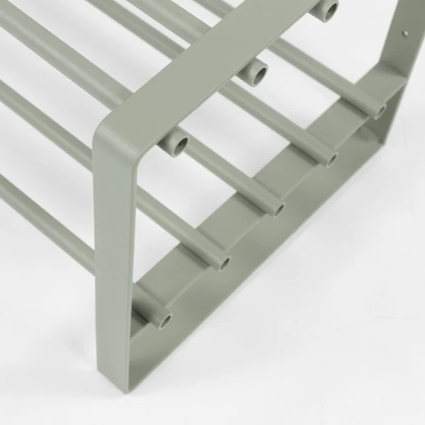 Voeg kleur toe aan uw hal met schoenenrek Rayna! Het rek biedt plaats aan een 6-tal paar schoenen. Bekijk ook onze wandkapstokken en ander schoenrekken van de Rayna-collectie.