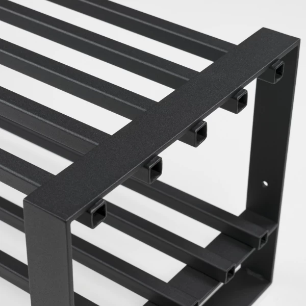 Dit stoer schoenenrek in zwart gepoedercoat staal is de perfecte aanvulling voor uw industriële hal. De 2 legplanken bieden plaats aan een 6-tal paar schoenen.Â
