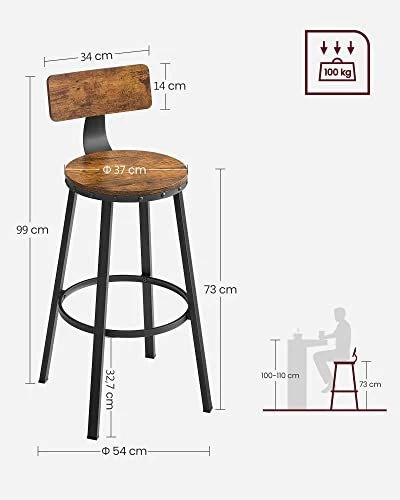 Verfraai je keukenhoek met deze industriële barkrukken in rustieke stijl met comfortabele rugleuning en voetensteun. Snel te monteren en ruimtebesparend, bieden 100 kg statisch draagvermogen