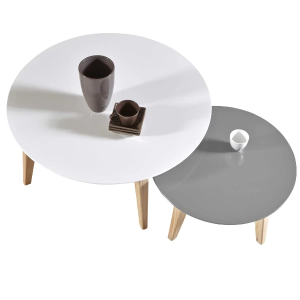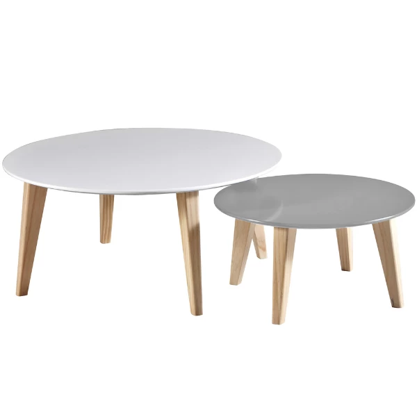 Set Van 2 Salontafels Reinhart 78 X 78 X35.5 Cm, 55 X 55 X 28 Cm-grijs/mat Wit/dennenhout
