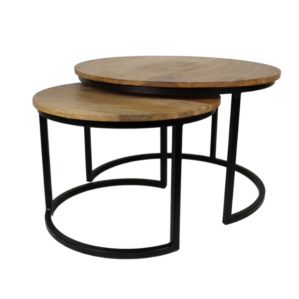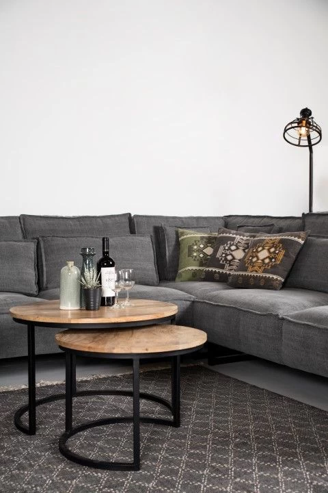 Met deze salontafels van HSM Collection haal je een multifunctionele set van tafels in huis. De set combineert twee mooie salontafels die apart als bijzettafel gebruikt kunnen worden of gezamenlijk als salontafel. De set is gemaakt van mangohout met een robuust stalen onderstel. Berg de twee tafels gemakkelijk op door ze ineen te schuiven. Omdat de salontafels handgemaakt zijn, kunnen er kleine oneffenheden in het hout voorkomen. Dit maakt juist van iedere salontafel een uniek exemplaar met een authentiek karakter.