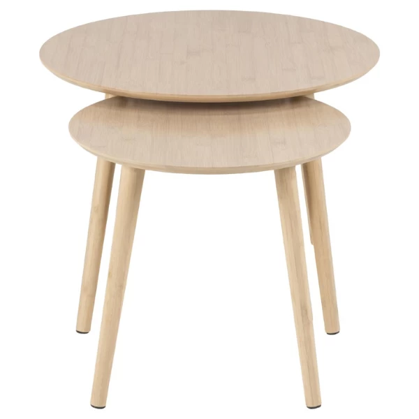 Een van de belangrijkste kenmerken van deze salontafelset is het gebruik van bamboe van hoge kwaliteit. Bamboe is niet alleen esthetisch mooi, maar staat ook bekend om zijn sterkte en duurzaamheid. De uv-lak die op het tafelblad is aangebracht verhoogt de duurzaamheid door het te beschermen tegen verkleuring en krassen veroorzaakt door dagelijks gebruik.