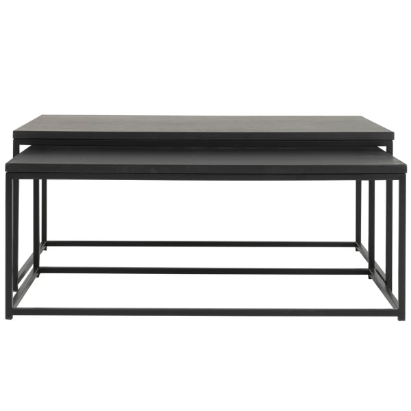 Set van salontafels Trend gemaakt uit zwart essenhout gefineerd MDF. De set bestaat uit een grote salontafel met afmetingen 100x60x42 cm en een kleinere salontafel met afmetingen 95x50x37 cm.