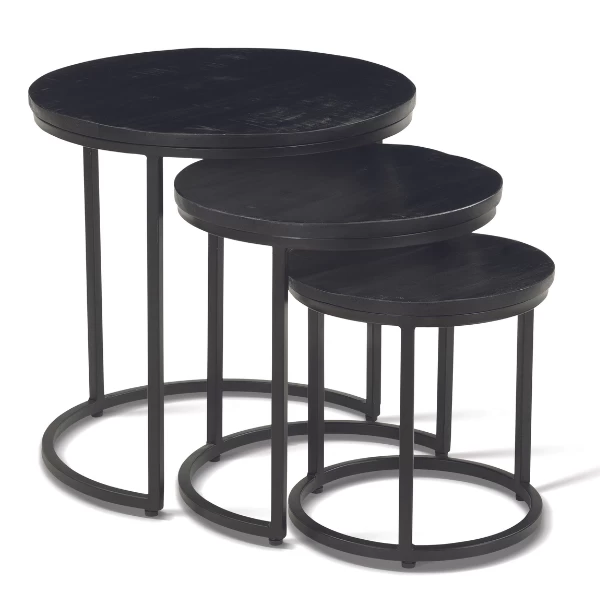 Set Van 3 Salontafels Amana Ø 45 Cm-zwart Magnoliahout