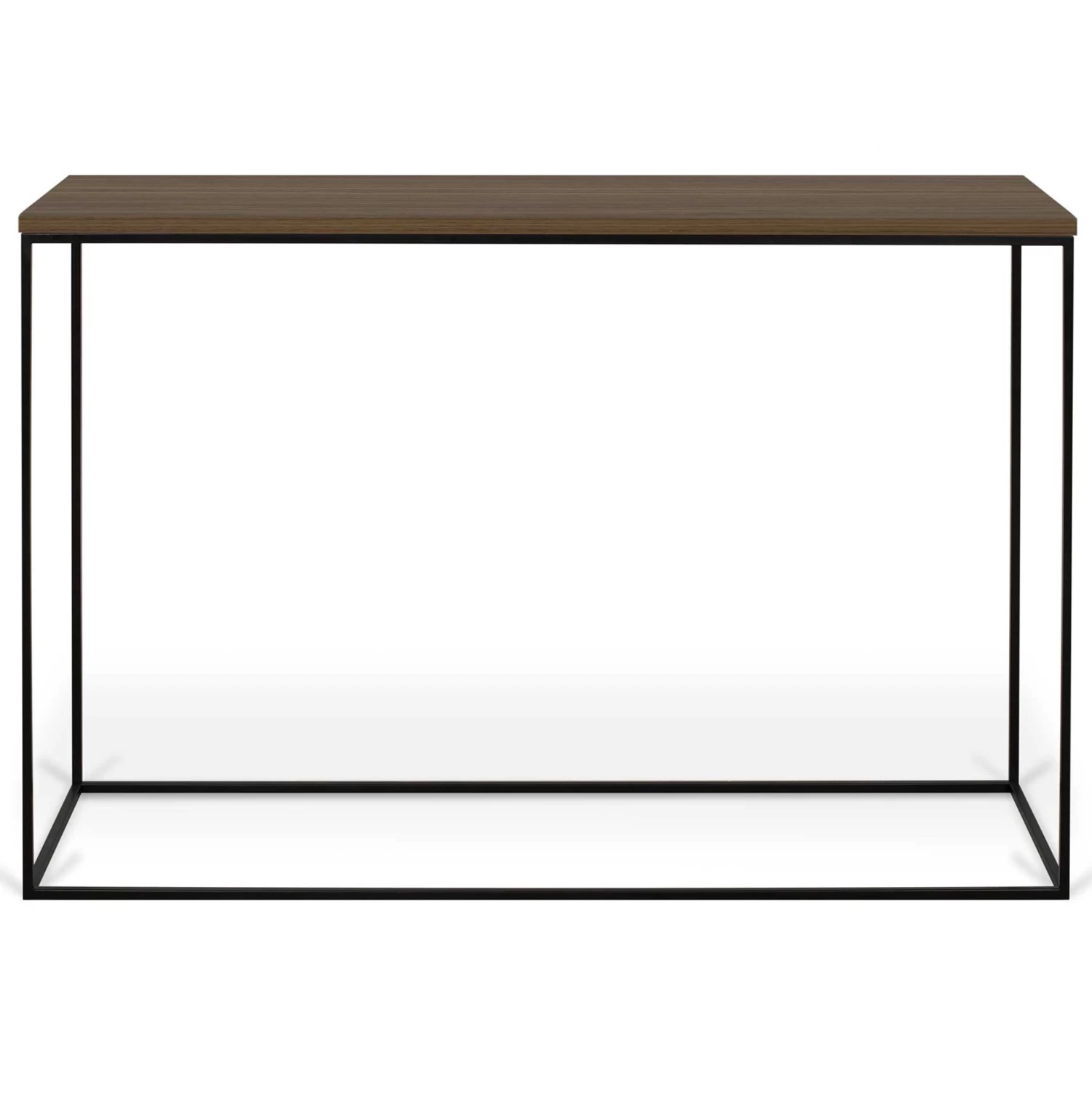 Sidetable Gleam met blad in walnootfineer en zwart stalen onderstel.