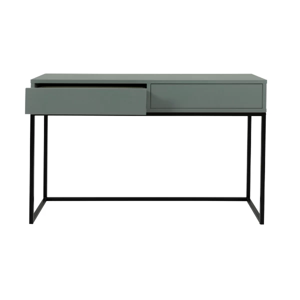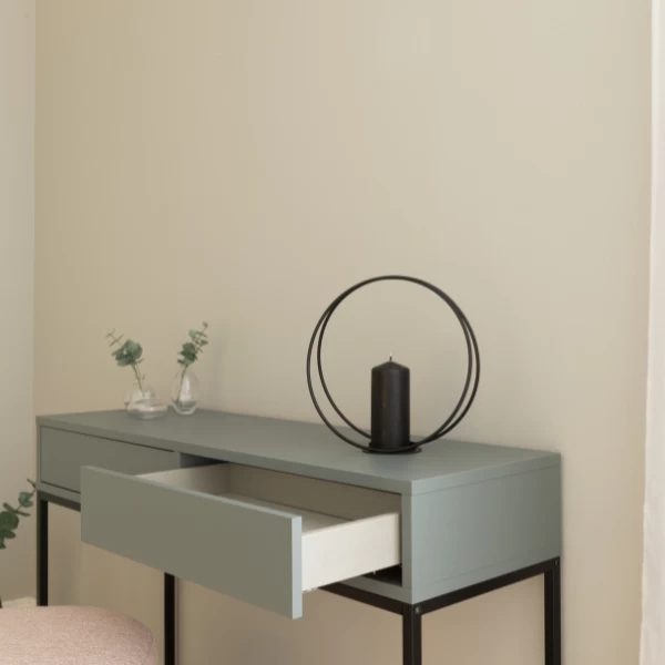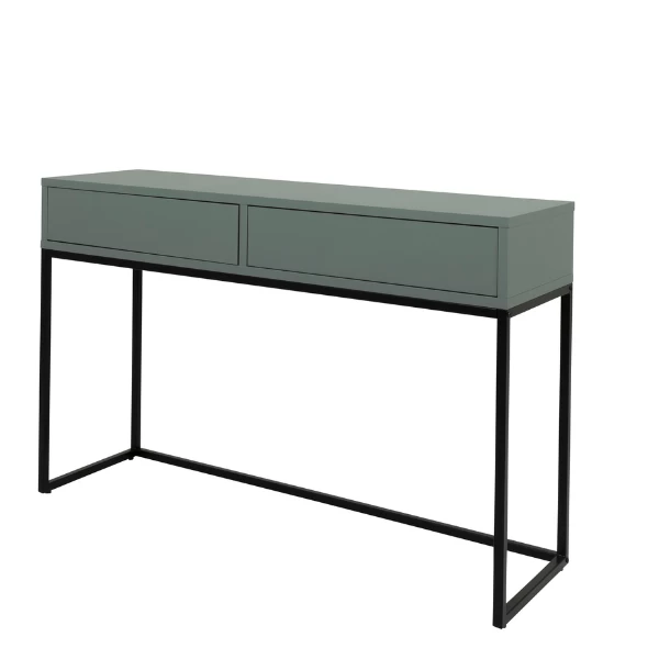 Sidetable Trend heeft door zijn rechte lijnen en metalen poten een strakke en moderne stijl. Het meubel past perfect binnen een minimalistisch interieur waar stijl en functie op de voorgrond treden zonder te veel poespas. De zachte groene kleur zorgt voor een ingetogen kleuraccent. De tafel heeft 2 lades die zorgen voor de nodige opbergruimte en deze beschikken over een druksysteem waardoor u de greeploze lade moet indrukken om deze vervolgens te openen. Dit tafeltje kan gebruikt worden als leuk wandtafeltje om allerhande decoratie op te plaatsen of als een handig bureautje in uw woonkamer. Poef is niet inbegrepen. Bekijk ook de andere meubels van de trend collectie op onze website.