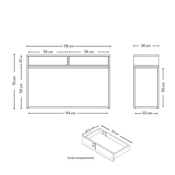 Sidetable Trend gemaakt uit gelakt MDF en spaanplaat bestaat uit 2 lades.