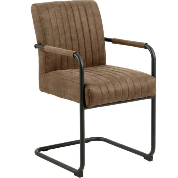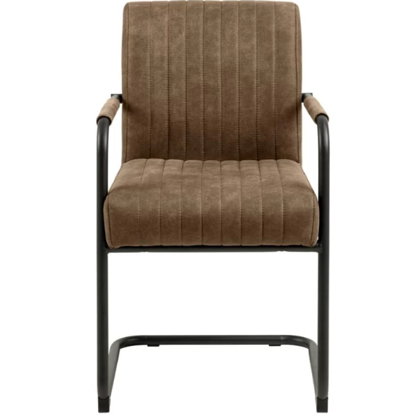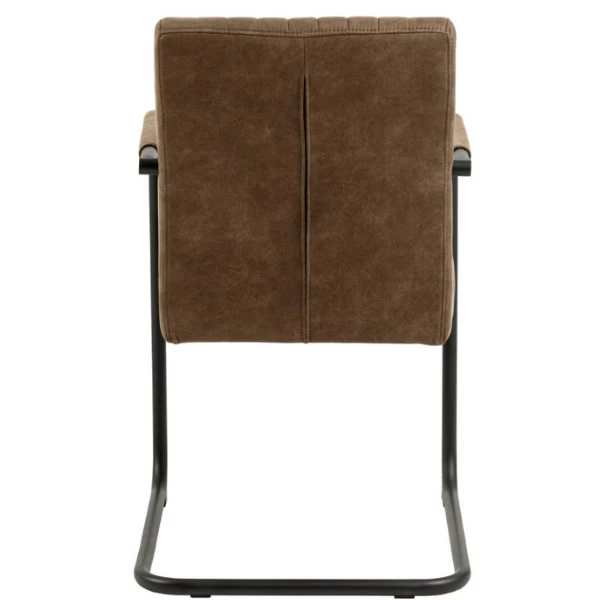 Stoel Adinda 50.5×64.5×84.5cm met zwarte stalen sledepoten en bruine bekleding.