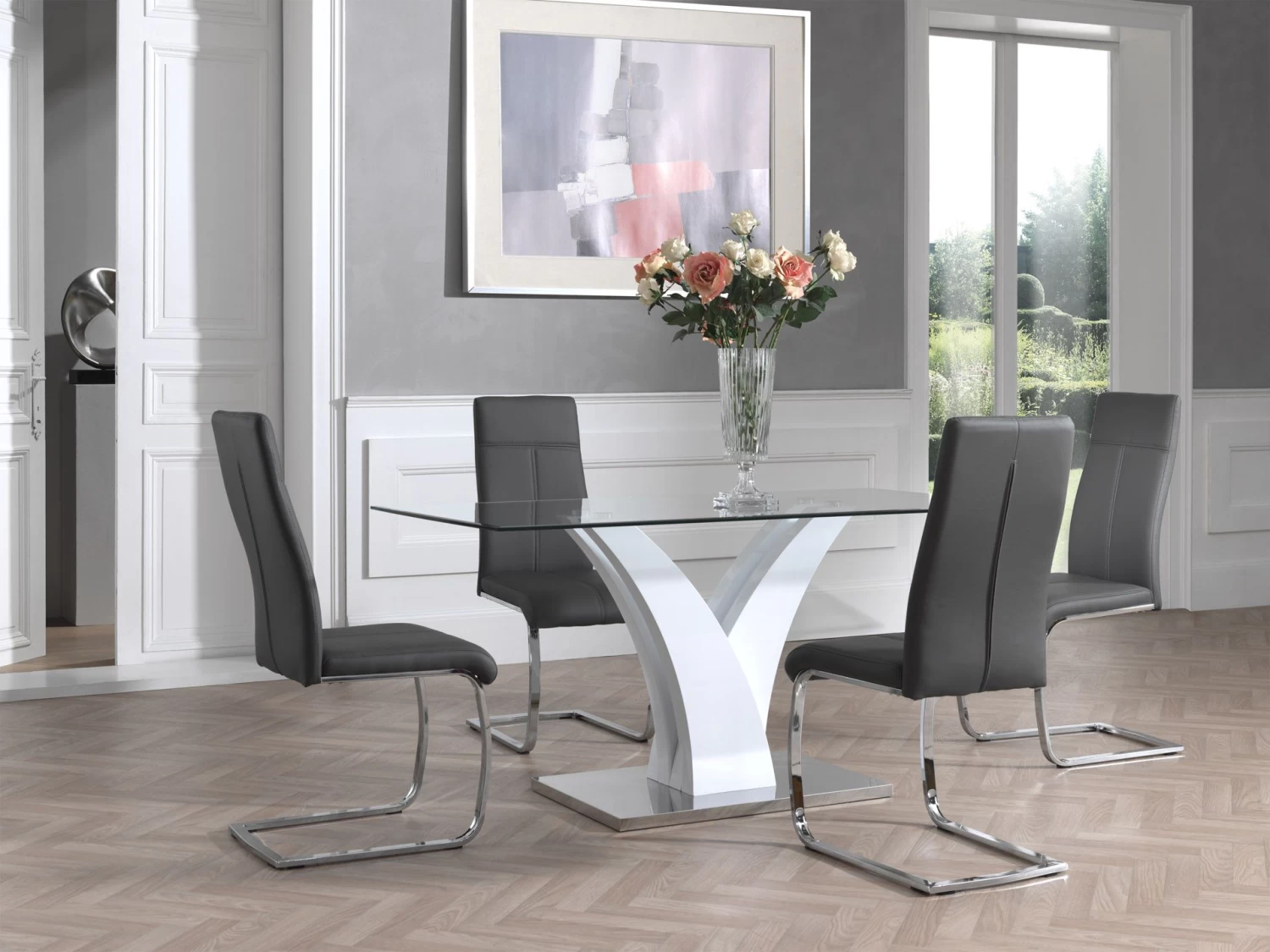 Deze stoelen zijn beschikbaar in het cappuccino, zwart, grijs en wit.