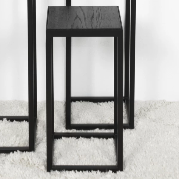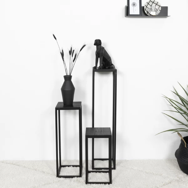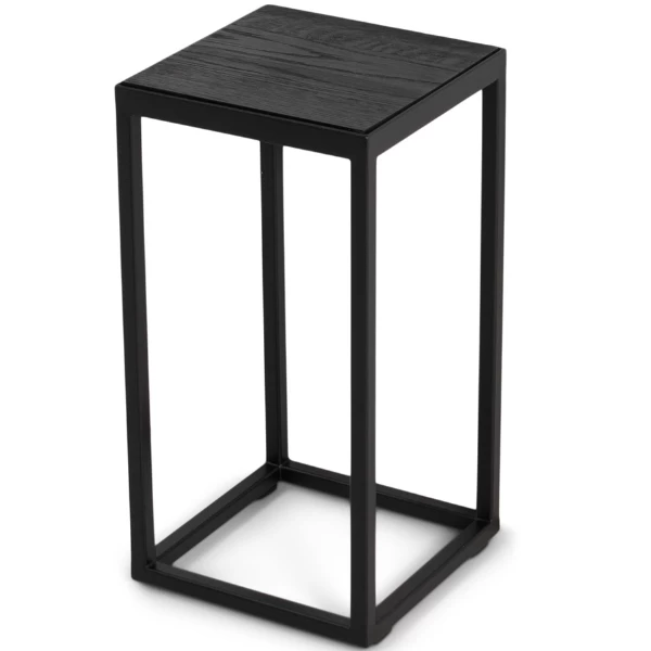 Het ruwe zwarte geborstelde eikenhout van het tafelblad in combinatie met het stoere matzwarte gepoedercoate stalen frame maken dat deze sokkel perfect zal passen in uw industriële woonkamer. Werk af met de juiste decoratie om de look te verkrijgen die u wenst. Combineer met eventueel met de andere Delfi sokkels en creëer een mooi harmonieus geheel.