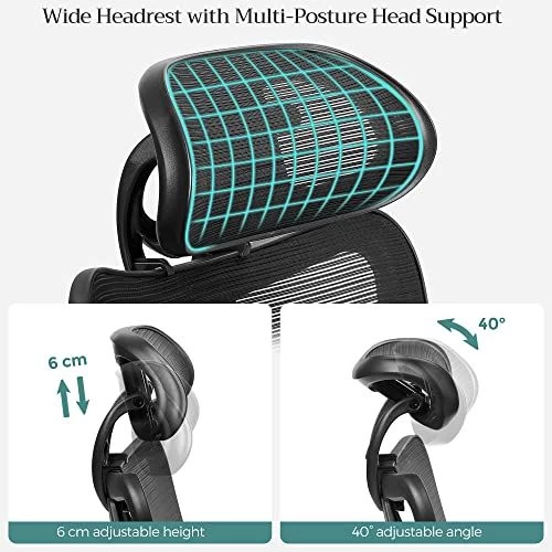 Songmics Bureaustoel, 152kg, Ergonomische Mesh Stoel Met Lendensteun En Hoofdsteun