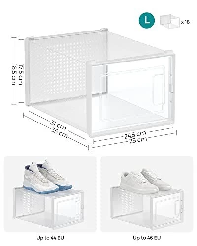 Songmics Klassieke Stapelbare Opbergdoos Voor Schoenen, 18 Stuks, Tot En Met Maat 12