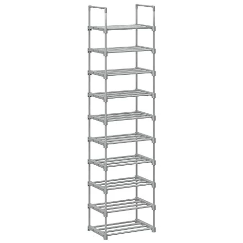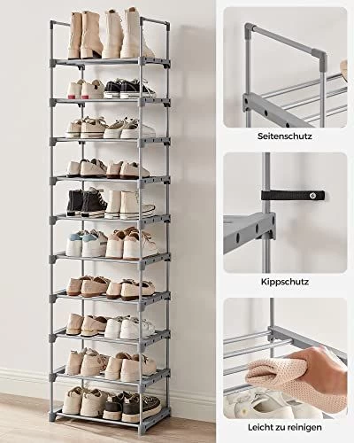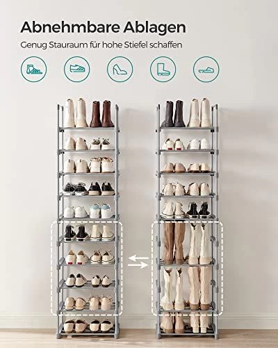 Songmics Metalen Schoenenrek Met 10 Niveaus, Aanpasbaar Ontwerp, Ruimtebesparend, Grijs