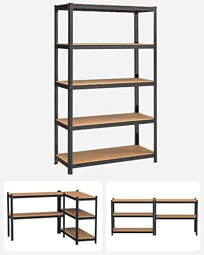 Zware en stabiele stalen 5-vaks stelling voor opslag; verstelbare planken voor items van alle maten; stevig frame voor 875 kg; montage zonder gereedschap; perfect voor thuis, magazijn, garage of gereedschapsschuur; zwarte kleur