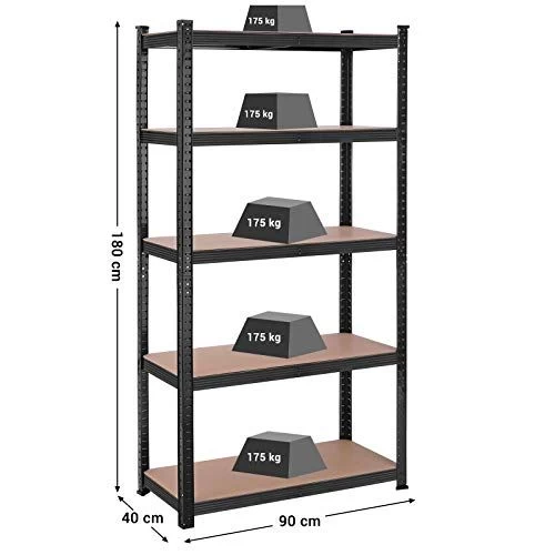 Stalen rekken voor zwaar gebruik voor opslag in garage, werkplaats en magazijn met een totaal draagvermogen van 875 kg. Gereedschapsloze, eenvoudige montage en verstelbare hoogte en deelbare planken maken dit gemakkelijk te gebruiken voor al uw opslagbehoeften