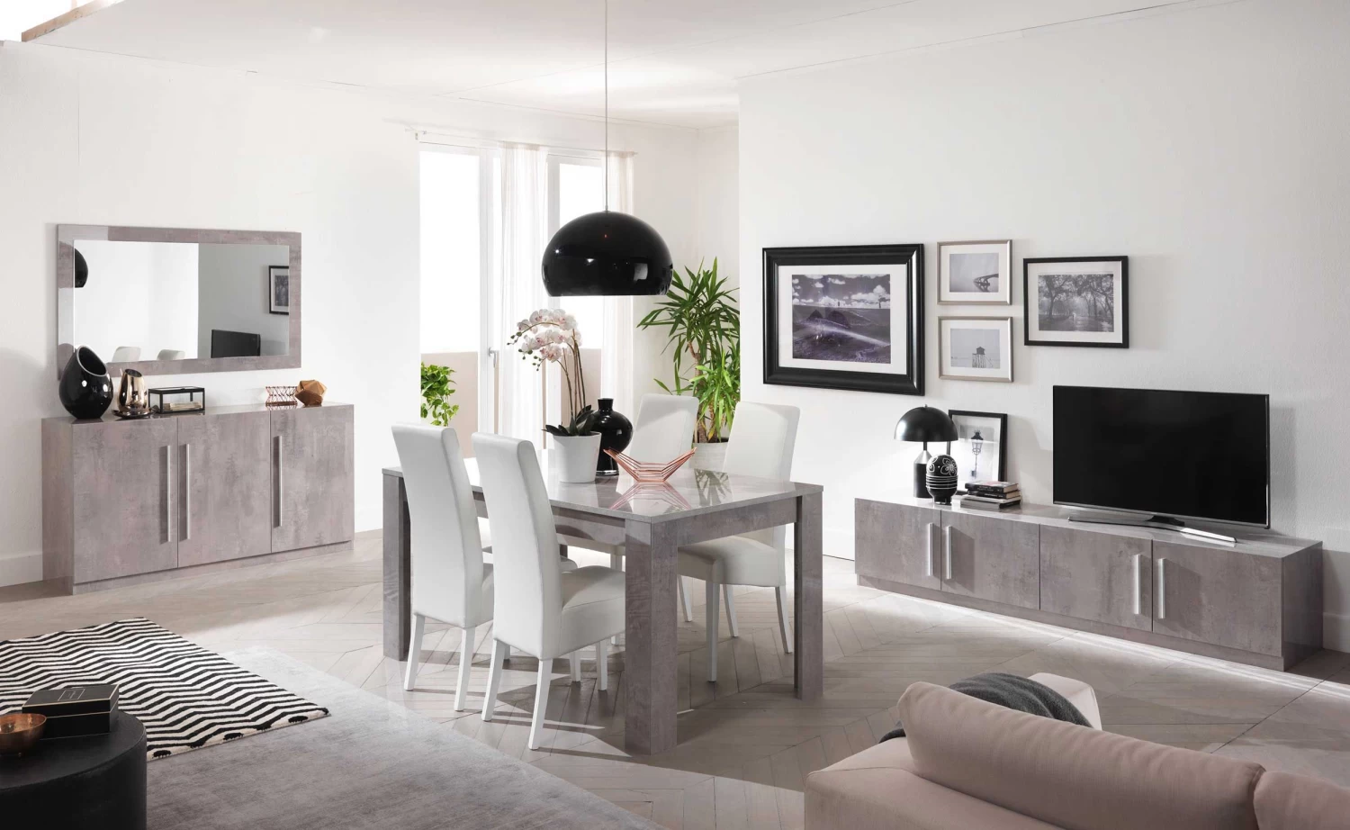 Zin om de huiskamer her in te richten of op zoek naar meubelen voor je nieuwe woonst? Met de meubelen van de Greta-collectie zorg je voor een moderne inrichting van je volledige woonkamer! De meubelen zijn gemaakt van spaanplaat (dikte 18 mm) en hebben een afwerking in betonlook.