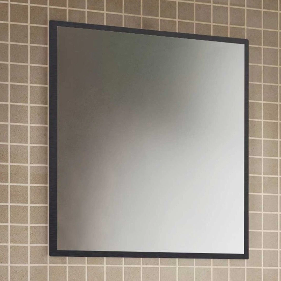 Spiegel Lotuk zonder verlichting, gemaakt uit MDF in grafietkleur en zilvergrijs eikdecor.