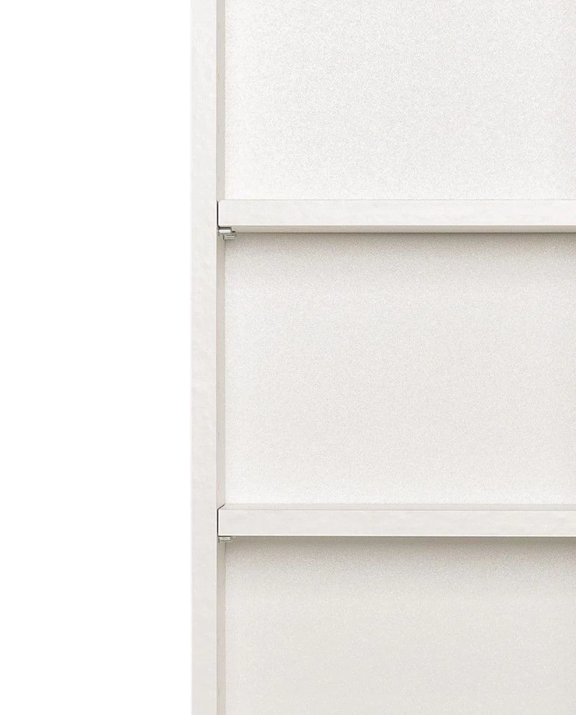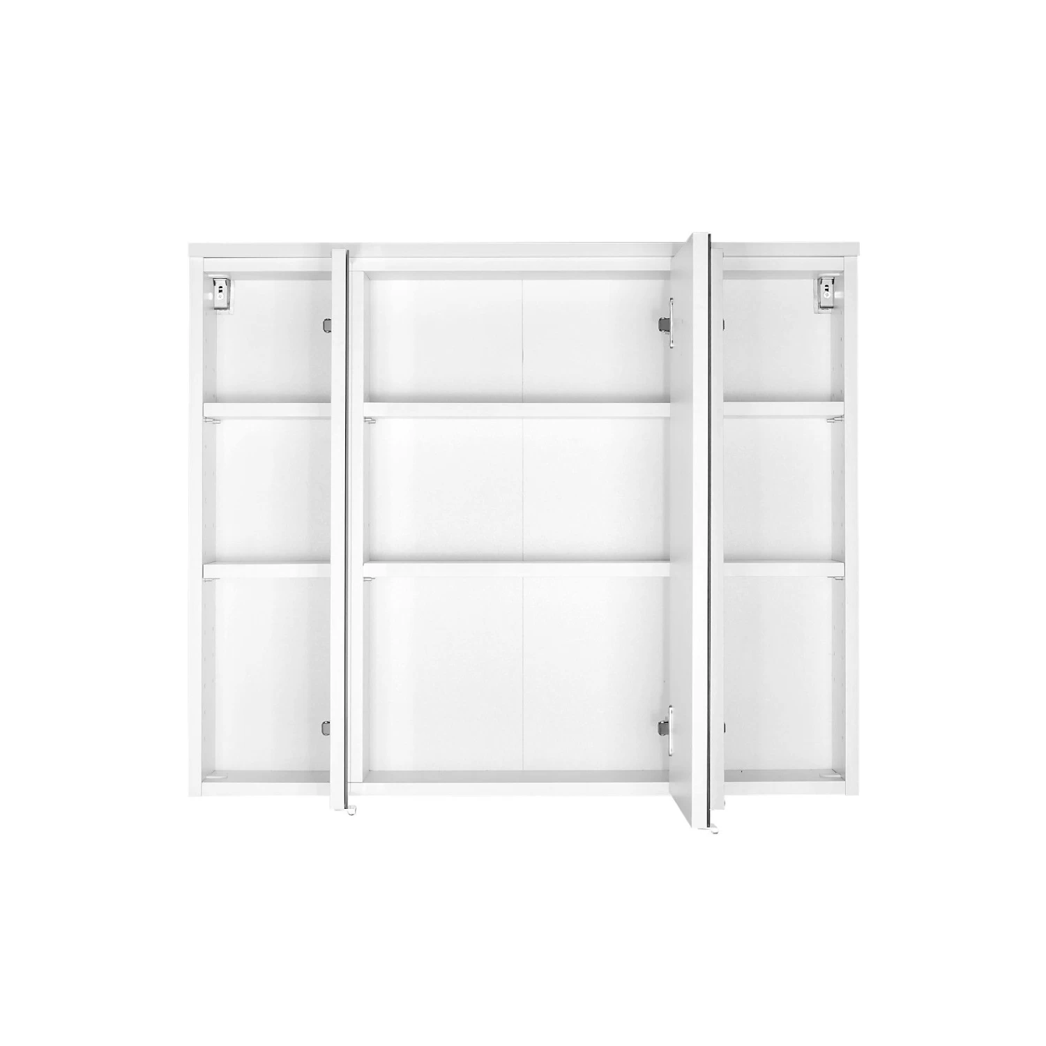 Witte spiegelkast Pollet, 80 cm breed, uitgerust met 3 deuren en 6 legplankjes.
