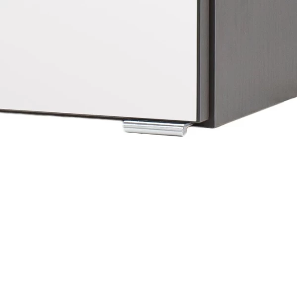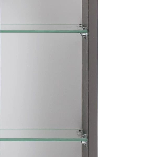 De collectie Vikas combineert een minimalistisch ontwerp met een natuurlijke uitstraling. Deze spiegelkast is gemaakt uit spaanplaat en MDF en afgewerkt met melamine in antraciet. Achter de drie deuren zijn 6 glazen legplanken voorzien zodat je plaats genoeg hebt voor je verzorgingsproducten. De kast is bovendien uitgerust met LED-verlichting en een stopcontact. Deze collectie bestaat ook in een afwerking in eikdecor. Bekijk het volledige gamma op onze website.Â