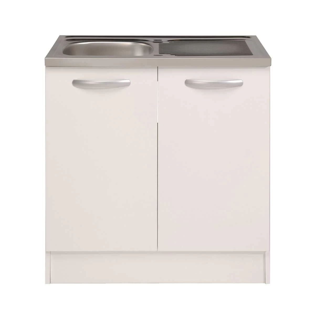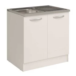 Deze kast is speciaal ontworpen om er een spoelbak op te plaatsen. De kast is vervaardigd uit hoogwaardige spaanplaat en heeft een witte kleur. De handvaten zijn gemaakt uit ABS en hebben een witte satijnen look. Het meubel is voorzien van twee deurtjes. De spoelbak zelf is niet inbegrepen.