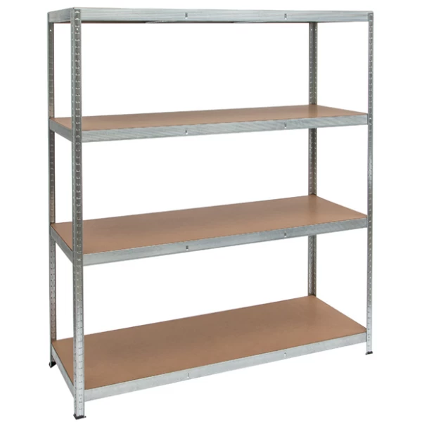 Dankzij stellingkast Heavy Duty kom je nooit meer plaats tekort in de bergruimte. Je kan dit rek snel en eenvoudig monteren (boutloos). Het rek bestaat uit verzinkte profielen en 4 legborden in MDF, die elk 250 kg kunnen dragen. Totaal draagbare gewicht: 1000 kg.