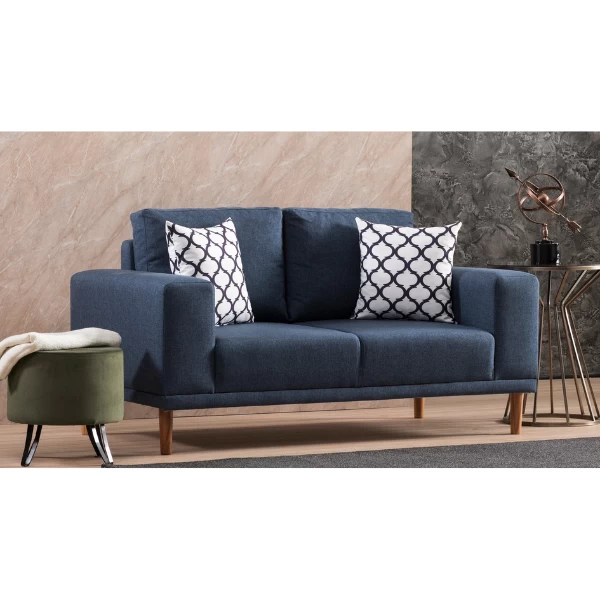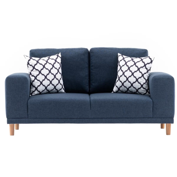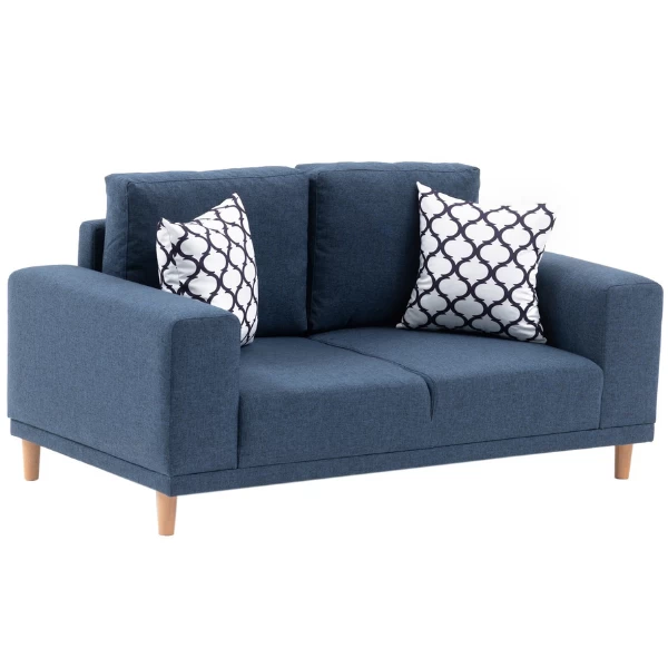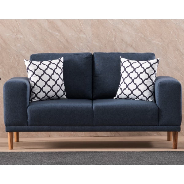 Stijlvolle 2-zitsbank Met Beukenhouten Frame En Donkerblauwe Polyester Linnen Stof
