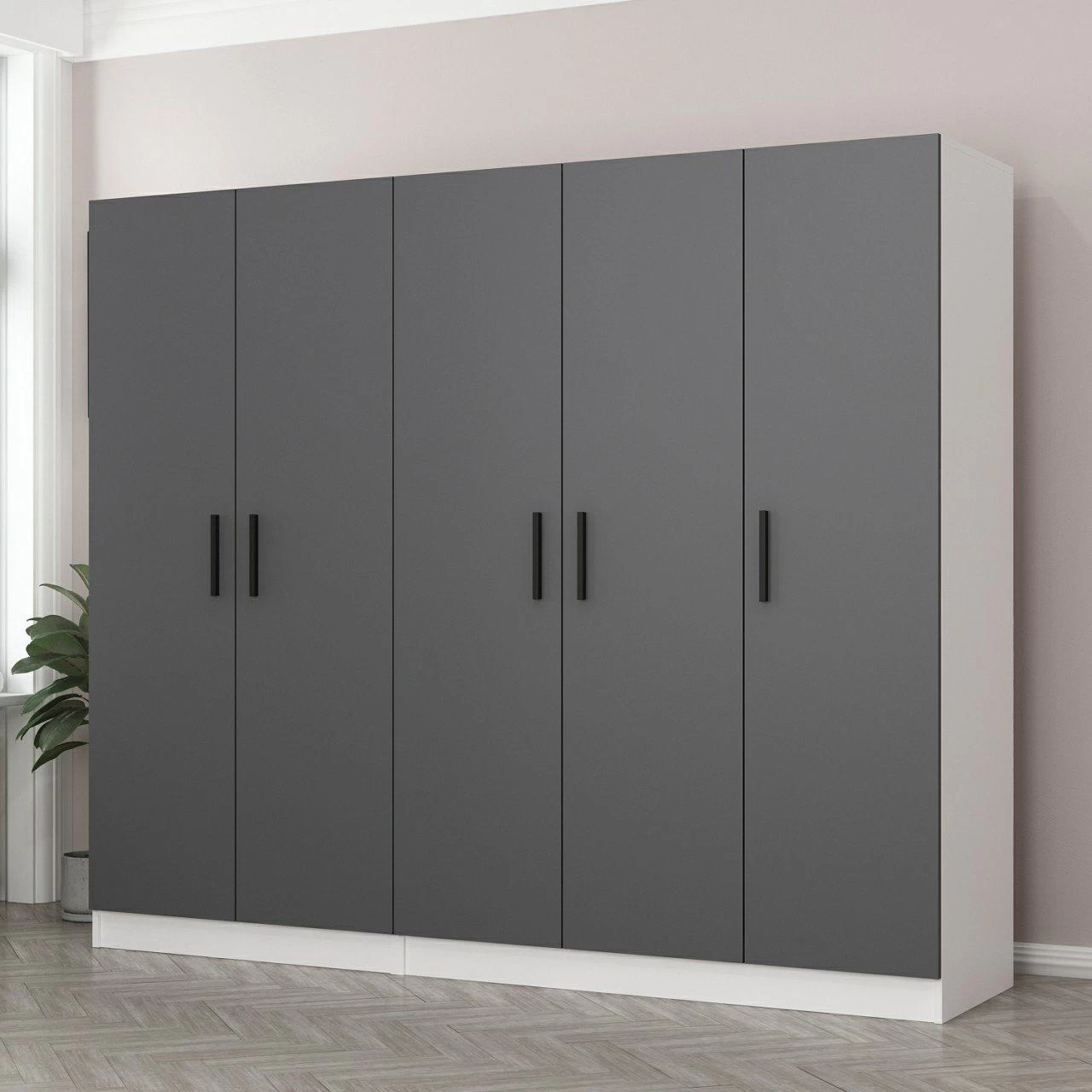 Met een breedte van 225 cm, een hoogte van 210 cm en een diepte van 52 cm biedt deze kast voldoende opbergruimte voor je kleding en accessoires. De vele legplanken bieden de perfecte oplossing voor het organiseren van je spullen, zodat alles netjes en gemakkelijk toegankelijk blijft.