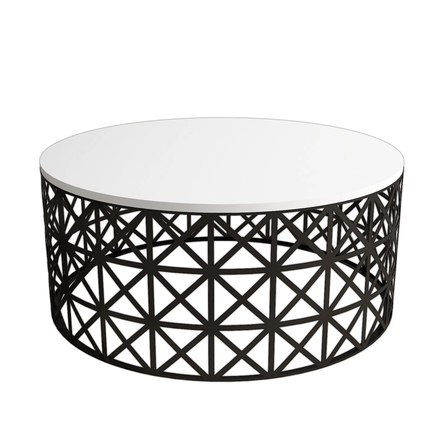 Stijlvolle Woody Fashion Salontafel | Melamine Gecoat | 18mm Dik | Smeedijzeren Poten | Wit En Zwart