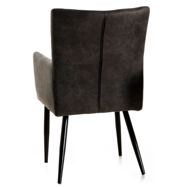 Stoel Carzo met zwarte metalen poten en bekleding in grijze stof. Met armleuning.