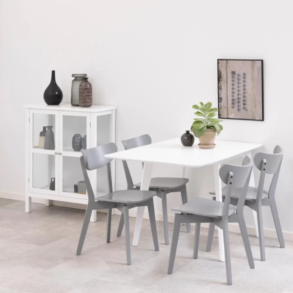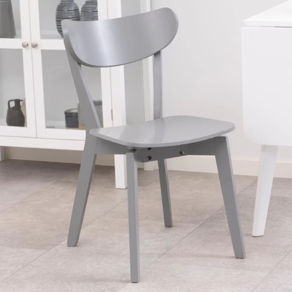Eetkamerstoel Rover, met basis in rubberhout en afwerking uit MDF in mat lichtgrijs.Â