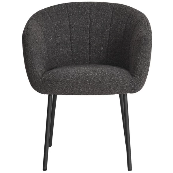 De Sevilla Bouclé grey Chair met metalen poten en Bouclé bekleding is een prachtige aanvulling voor elke ruimte. Met zijn afmetingen H-H 79 x B-L 57 x D-P 62 cm biedt hij een comfortabele zitervaring terwijl hij toch een compact en strak ontwerp behoudt. Een van de belangrijkste kenmerken van deze stoel is de Bouclé-stoffering, die niet alleen een vleugje elegantie toevoegt, maar ook een zacht en gezellig gevoel geeft. De Bouclé stof staat bekend om zijn duurzaamheid en slijtvastheid, waardoor de stoel zelfs na langdurig gebruik in topconditie blijft. De metalen poten van de Sevilla Chair zorgen niet alleen voor een stevige basis, maar verhogen ook de esthetische aantrekkingskracht. Het strakke en minimalistische ontwerp van de poten voegt een modern tintje toe aan elke kamer, waardoor de stoel perfect past bij eigentijdse en minimalistische interieurontwerpen.