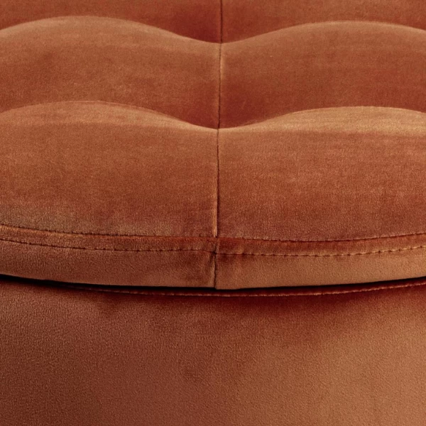 De Retina ronde voetenbank met opbergruimte, voorzien van de Vic stof copper 70AC en met een afmeting van Ø60×35 cm, is de perfecte aanvulling voor elke woonruimte. Met zijn verborgen opbergvak en getufte ontwerp biedt deze voetenbank zowel functionaliteit als stijl.