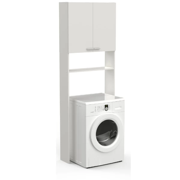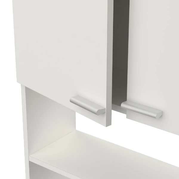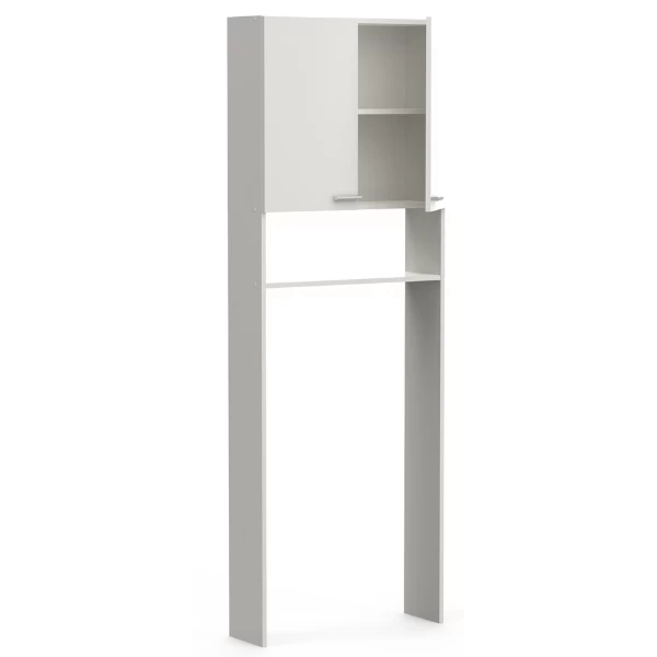 Maak optimaal gebruik van de ruimte in je badkamer met toilet-/wasmachinekast Febe. Door deze kast boven je toilet of wasmachine te plaatsen, tover je de anders onbenutte ruimte boven je toilet/wasmachine om tot extra opbergruimte. Hierdoor kan je je wasmiddelen, poetsmiddelen en toiletartikelen discreet en binnen handbereik bewaren. Dankzij de melaminelaag is deze kast waterbestendig en dus uiterst geschikt als badkamermeubel.Â
