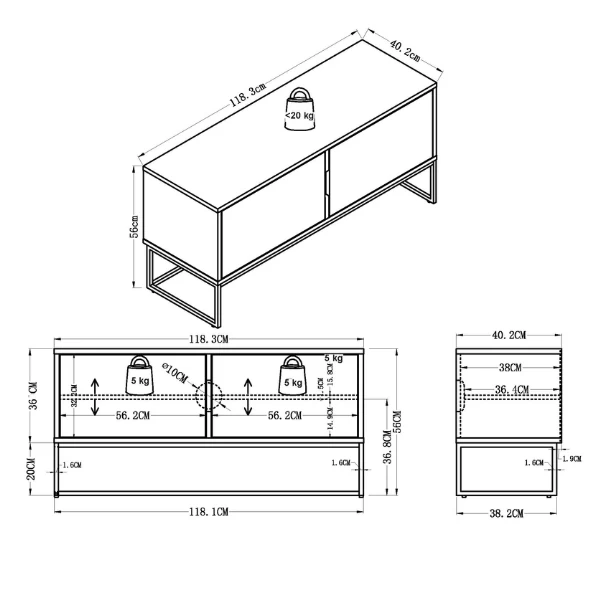 Tv-meubel Trend 118 Cm- Zwart Essenhout