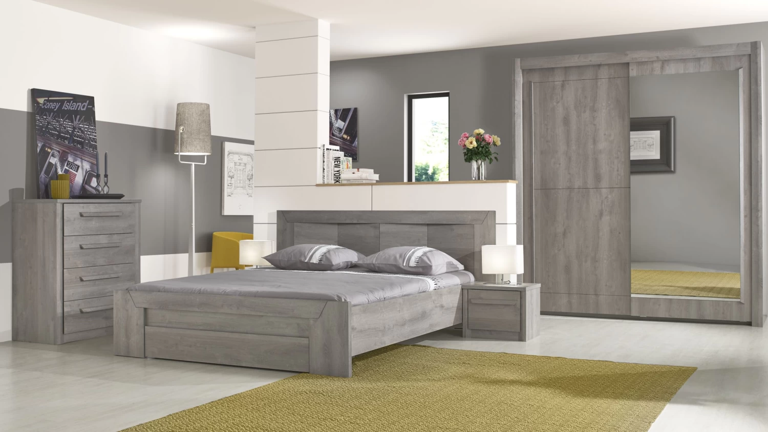 Met de meubelen uit de Hayden collectie kies je voor een tijdloze inrichting van je slaapkamer. De slaapkamermeubelen van het Franse merk Gami zijn gemaakt van spaanplaat en bekleed met een imitatieprint van lichtgrijze eik.