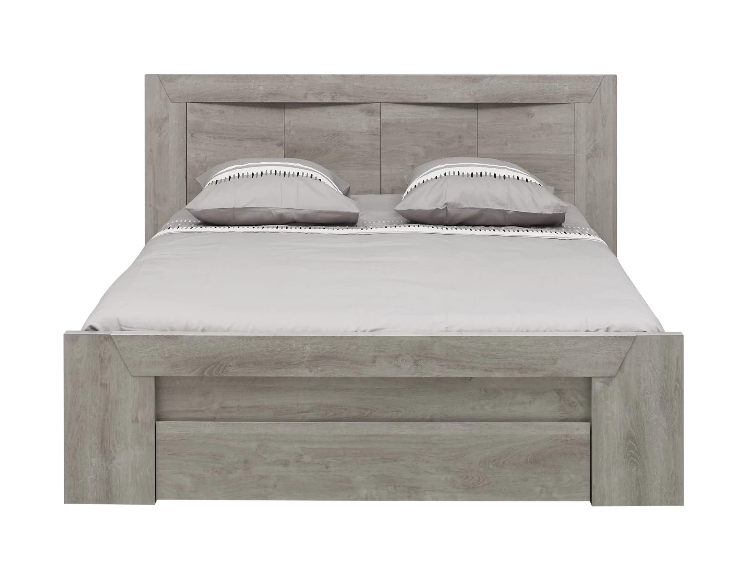 Bij dit tweepersoonsbed met opberglade staan de hoofdbordpanelen in reliëf voor een gegarandeerd visueel effect. Het bed is geschikt voor een matras en een lattenbodem van 140 x 190 cm of 2 aparte lattenbodems van 70 x 190 cm. Kies je voor 2 lattenbodems, dan heb je middenpoten nodig. Je kunt ook een achterbouw met 2 rekjes aan het bed toevoegen. De matras, lattenbodems, middenpoten en achterbouw zijn apart verkrijgbaar in de webshop.