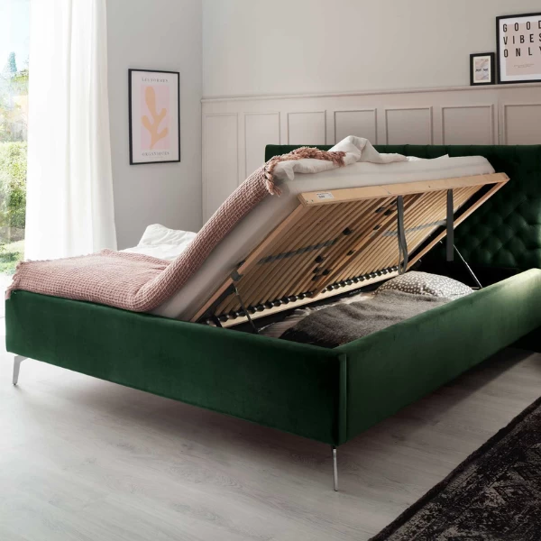 Tweepersoonsbed Janice Met Opbergruimte 160x200cm – Donkergroen/chroom